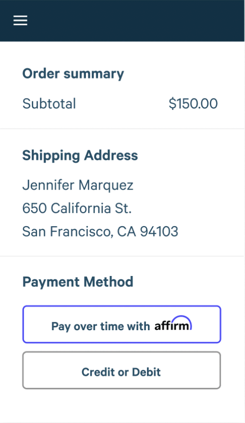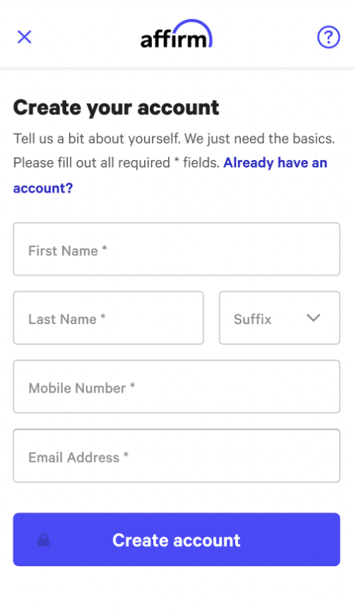 Select Affirm at checkout, then enter a few pieces of information for a real-time decision.